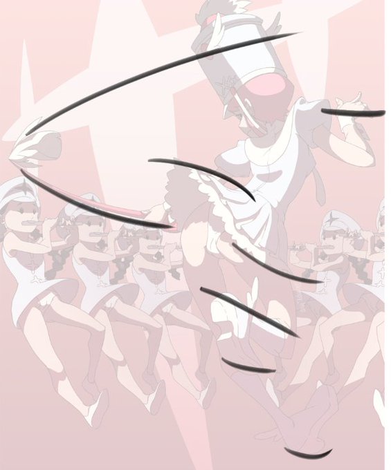 Some aspects of the main figure (and even that background star graphic) "belong" the that horizontal arc. They're part of that movement!