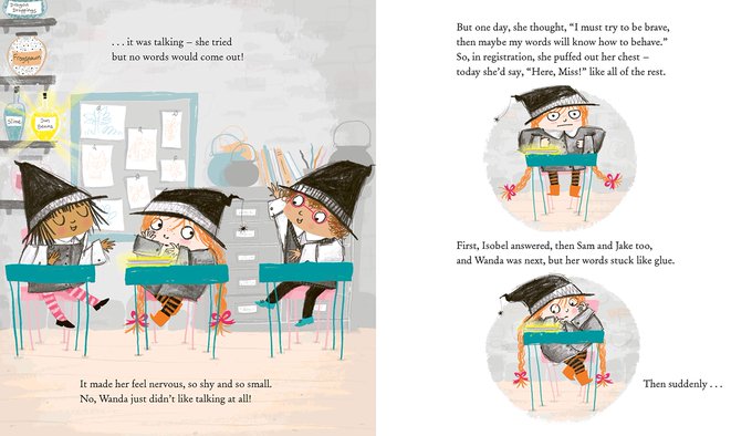 It's #WorldVoiceDay! Here's Wanda's Words Got Stuck, written by @lucymayrowland & illustrated by me. A magic-filled rhyming picture book, perfect for any child who feels anxious about talking. Filled with potions, spells... and magic words: https://t.co/hKC6Wfs8t3