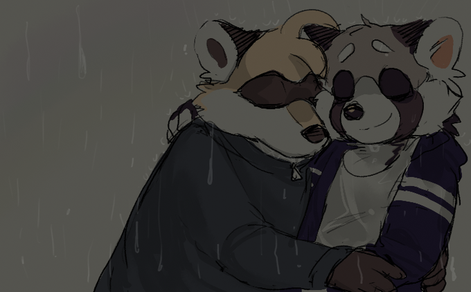 just a #raccoon and a #redpanda holding paws o //// o #furry