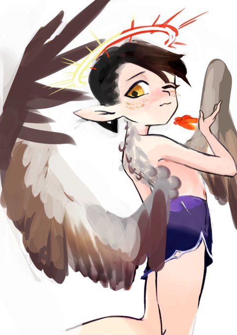 描き直すたびに人外化していく天使 #イラスト