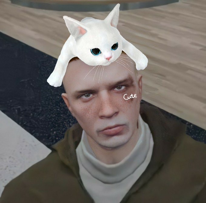 Gustabin con un michi en la cabeza. Simplemente adorable. — 🐱