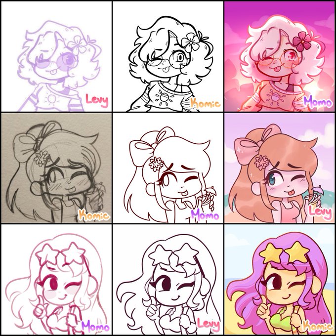 Switcharound meme with @KomicDraws and @levydrawz !!! Bringing these bad boys back 😂 we did each other’s OCs in summer looks since summer is so soon 😭💜 #switcharoundmeme