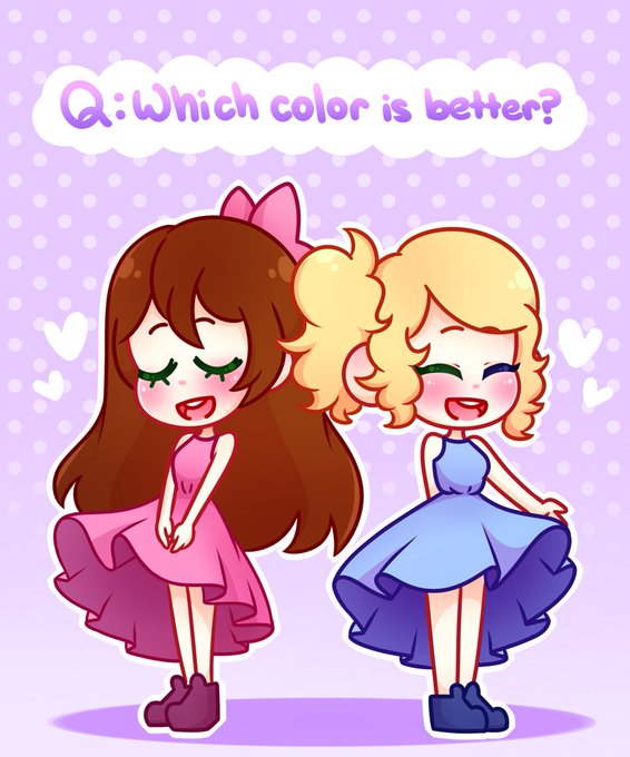 An art trade w @PixelatedFairy !! I went off her part where the two characters were given a fashion question haha guess it’s pink v blue- blue seemed to be the winner on Instagram by a long shot 😅