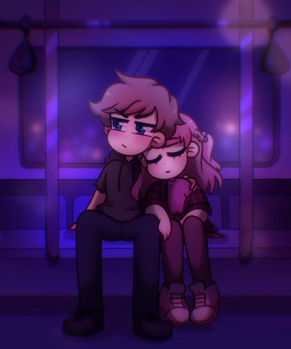 Oscar and Adelie take the late night train ride home 🚃💕 #ocart #myocs #procreateart