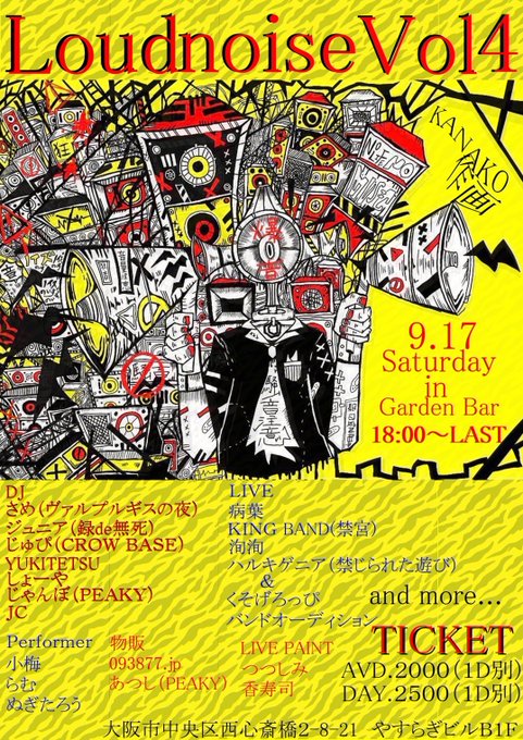 土曜日はGardenBarでLoudnoise!俺は0時くらいに撤収して1時から店開けてるやで!ゲストにコルドロンからもとこさん!カレー持って来てくれるから食べにおいでー!ほんまに美味しいからまだ食べた事ない人はこの機会に是非!