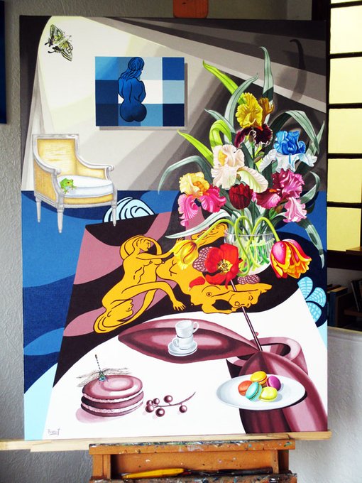 #art une de mes dernières peinture au pinceau date de 2014 : « Les Macarons »