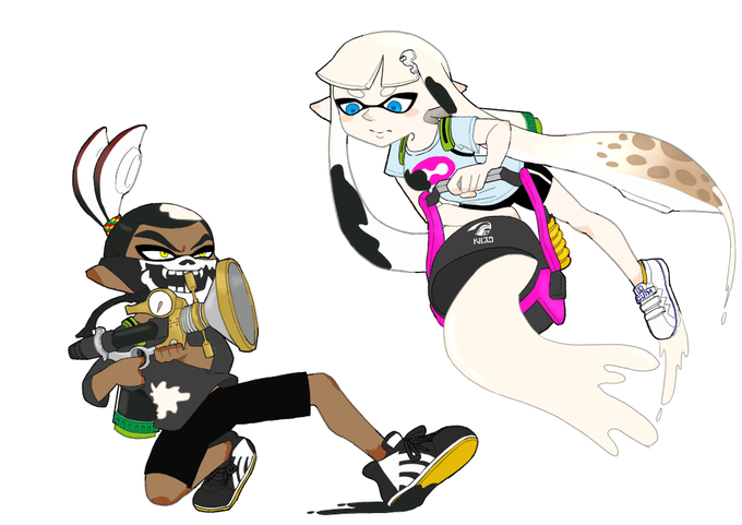 以前描いた白イカちゃんと黒イカくん