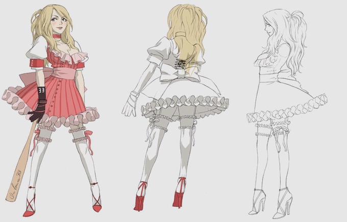 i'd be remiss if i didn't mention a NMH girl here, so have Bad Girl, aka Charlotte Birkin. her character is really cool, i love the contrast in her design (frilly dress + leather gloves is *so* cool), and also she's a hot lady with a bat and cute boobs okay what more do you want