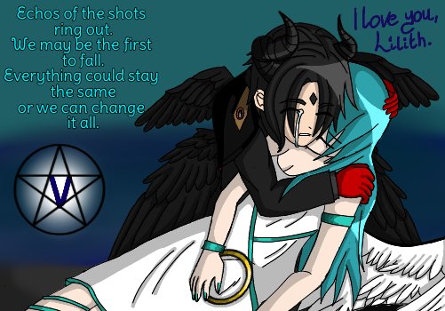Starting A Lilith Chronicles type drawings, starting wiv one of the saddest moments. Also this was my first attempted at a demon form... It sucks ik. Also the lyrics are from meet me on the battlefield.