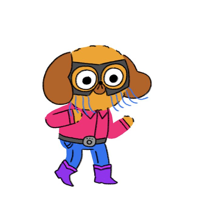 A drawing of Pup from Littlest Friends dressed as @orvillepeck