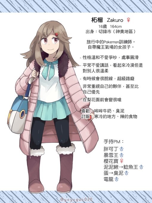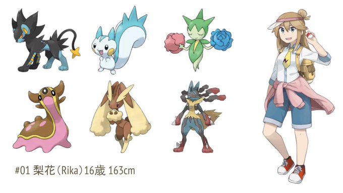 初始的梨花大約是[成年女性/精英訓練師]的印象,後來認真想設定時就改成了[旅行中的訓練師少女]。比起已完成的專業訓練師,還是青少年的成長物語比較有趣吧。