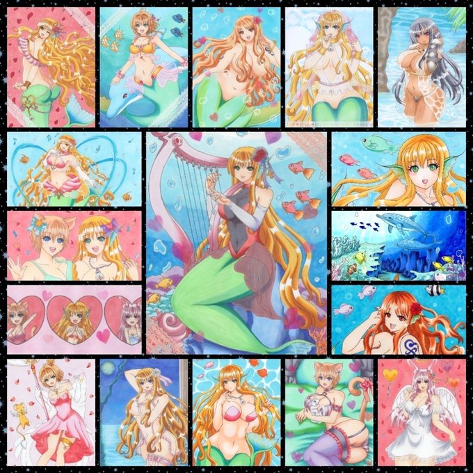 pixivのフォロワー数が500人を越えました~😊🎊🎉感謝の気持ちを込めて大好きなうちの子の人魚のティアラちゃんを描きました💖