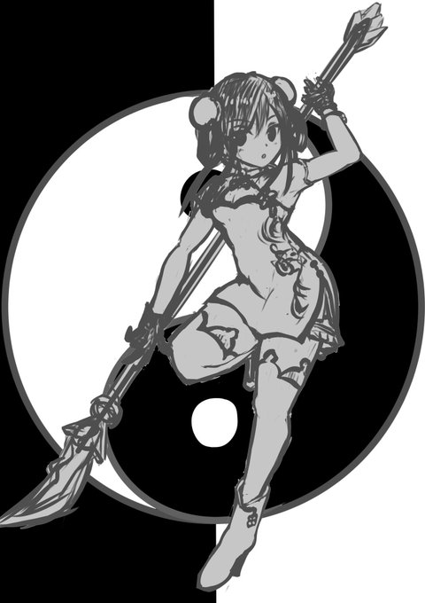 基礎塗りとレイヤー分割終わり 線の強弱が無いので、そこを少し弄って塗り込みに入る 衣装の模様それっぽくなったかも