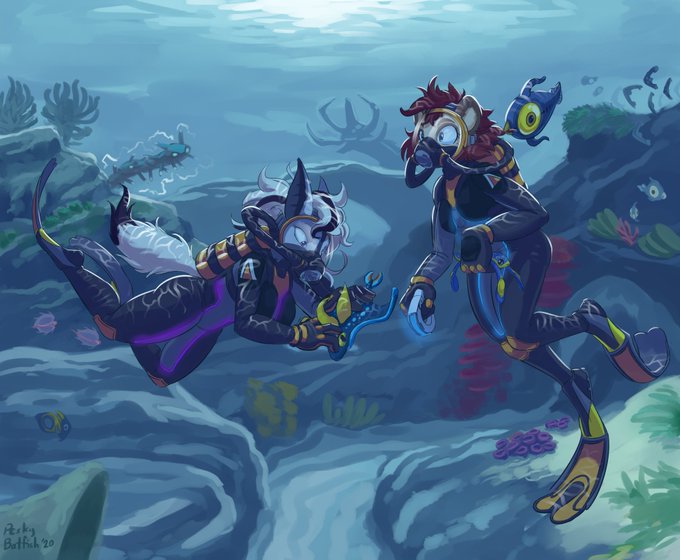 Really pleased to have been asked to draw a bit of Subnautica art/diving for @LatchieLatch and StarshineBomber!