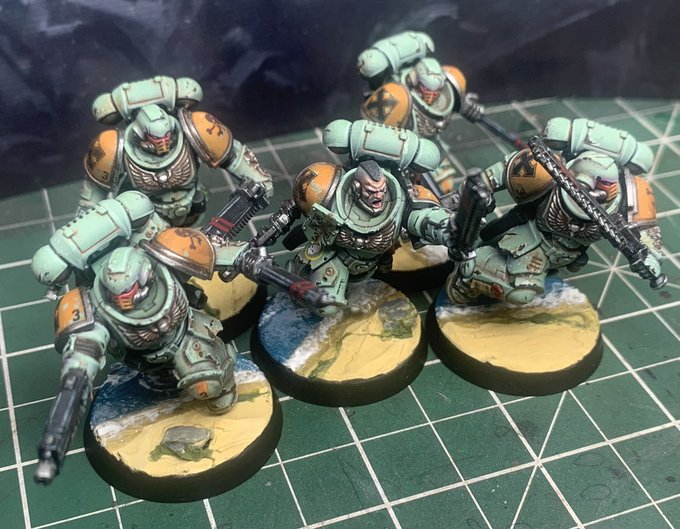 Finally got my hobby on and finished these assault marines for my 2/11th chapter. Naughty Cawl… #warhammercommunity #warhammer40k #warmongers #40K #PaintingWarhammer