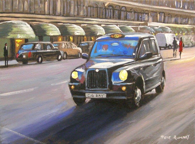 I hadnt painted my favourite London cabs for a while so here you go ! https://t.co/v2sVrHEh9C #Taxi #blackcab #london #art #uk #peterumney #paintings #handpainted #canvas #artwork