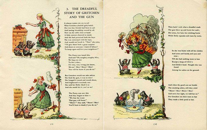 @OhKLind @mollykh Didn’t like Struwwelpeter as a kid. Read by mum, often, ?so I didn’t grow up a sloven. But I can still recite The Story of Little Suck-A-Thumb from memory. Struwwelhitler parody pub’d UK Daily Sketch newspaper to raise funds for clothes, bedding, boots & food for air raid victims