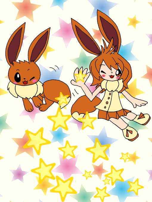 原型イーブイと擬人化イーブイのスピードスター!!