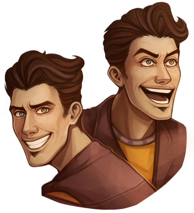 Little redraw of @JustineTinkWink's comic 'Rhack kisses'. Her art is from 2016, but I still love it so much 🧡💙🖤 All of you should probably check it out 👀