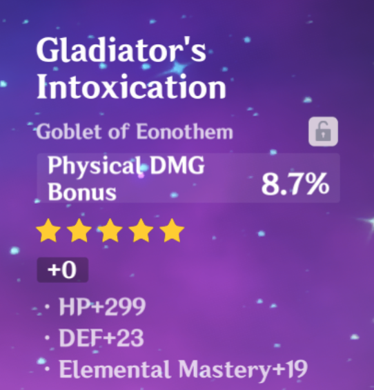 - Gladiator's Intoxication artifact from Genshin Impact (straight from my personal vault of garbage)
