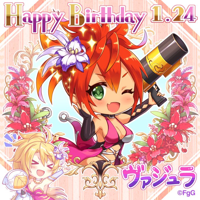 1/24はヴァジュラの誕生日💥メギドからは髪飾りと大量の赤い花をプレゼント🎁華やかな髪飾りを身につけて普段と違うエレガントな大人の女性に大変身✨…のはずが飾られた花が燃えたぎる炎に見えてしまい、結局いつものテンションに戻ってしまった熱血系女子ヴァジュラなのでした🔥 #ファンキル