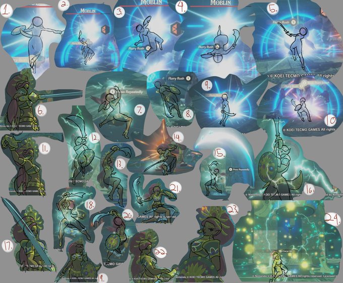 Drawing Urbosa and took photos for reference, Anyone got thoughts on which pose I should go with? (traced poses for clarity, final product won't be)