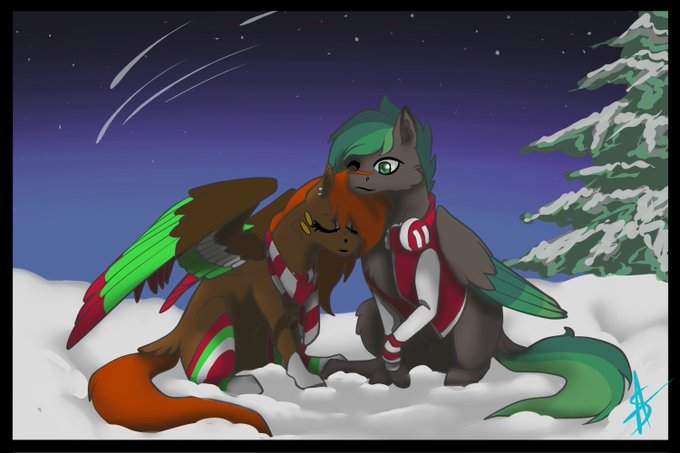 Winter season is here! I drew my friends mlp oc @MaxIsABroski with one of my oc’s. Drawing idea came from a screenshot of ponytown lmao