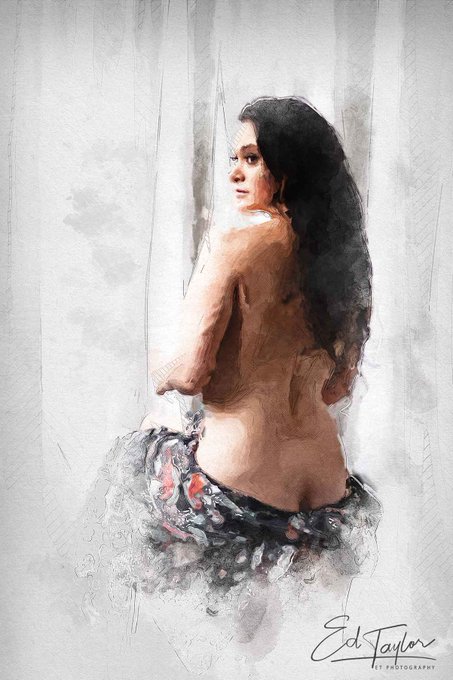 Erotic Digital Art by Ed Taylor. Showing her back water color.