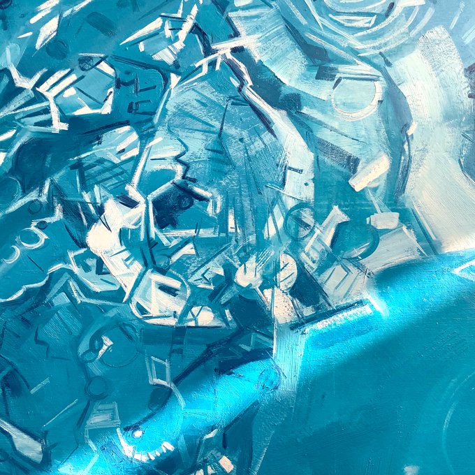 Seeing as this large commission is going to an engineer I though I would try and leave some of the mechanics exposed. As much as possible anyway. It’s always a balance between what you put in and what you leave out. #oilpainting #swimmingart