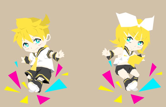 nekosakanaさんのリンレン!アートのような、カクカクした画風が楽しいdd(´∀`@)【https://t.co/pDZVEAHCdK】 #piapro #鏡音リン #鏡音レン
