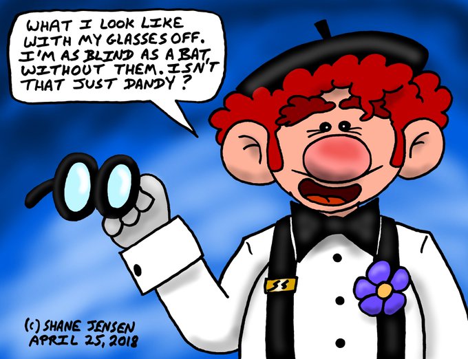 Colored this time. My character Pierre with his glasses off. I've wanted to draw this for quite a while and utilize the classic cartoon gag of showing a glasses wearing character without their glasses with beady dot eyes. Felt right to have this be Pierre's situation as well.