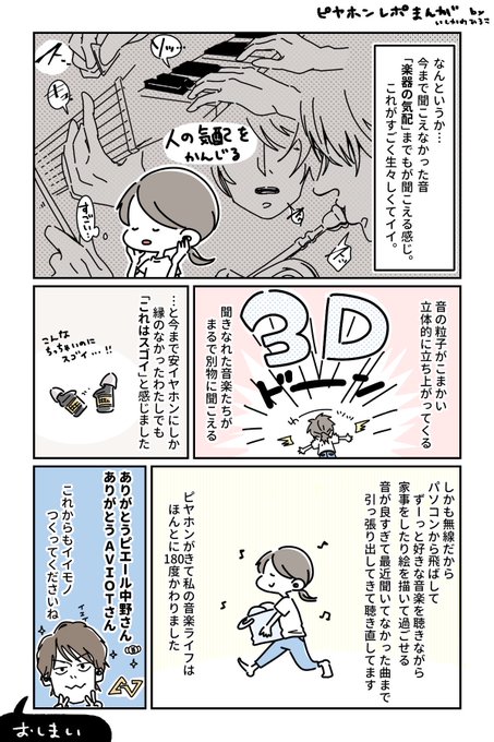 ピヤホンで聴くと多くの方がイラストのように感じてくれてます。有線と無線があって、無線は2以外在庫切れなので、転売に気をつけてください。生産は続いているので、待てば正規の価格で購入できます。 https://t.co/80t8w1CTse
