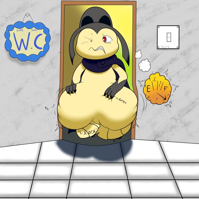 Commission completed for @AmeliaMawile! They waited just a lil' too long, and now their doorway won't let them through... if they just hold a bit longer and inflate further, that'll solve the issue, right?