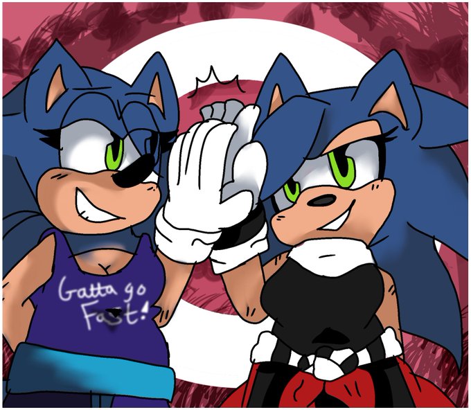 Just drew @CuteyTCat's epic sonic girl beside my own girl Seri. Great seeing other cool gender bent sonic characters