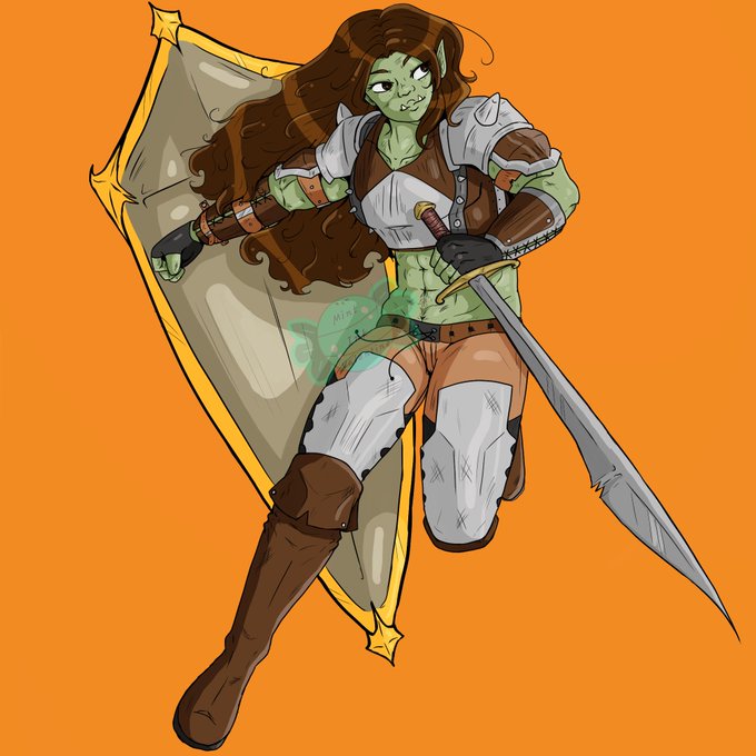 Commission for a good friend on discord (sadly they have no twitter) but, this is their Half orc Barbarian Paladin character, Ya'na🗡🛡