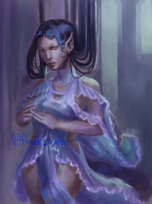 #JuneStudyJam 5/30 Yoshitaka Amano study, where I attempt to emulate certain effects of his art while not compromising my style. It's all about values and very fickle edges in details that I clearly was too lazy to keep working at, but I got the gist of it