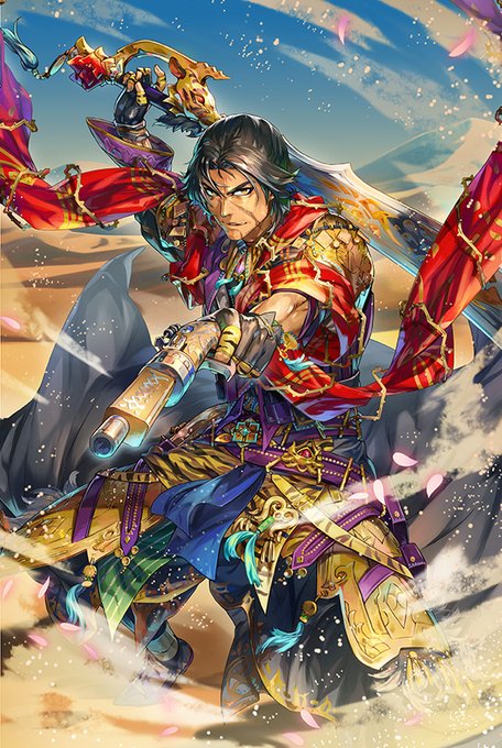 過去から逃げず、向き合うことでかつての強さと今の強さを共存させたドゥルダナ。砂漠の意匠が施された大剣は『真砂の虎』と呼ばれた軍人時代の象徴であり、それを振るう際はまさに猛虎の如く戦場を駆け回る。