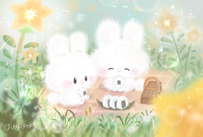 #一年間で絵が上達してるか見てみましょう ←1年前 最近→ とりあえず、ふわふわ感は増したかな🐰