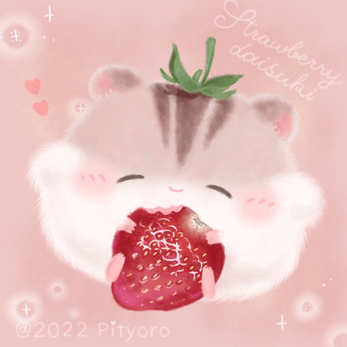 イチゴを抱きしめながら寝る ちまはむ🍓 #ちまはむ #ハムスターの日 #世界ハムスターの日