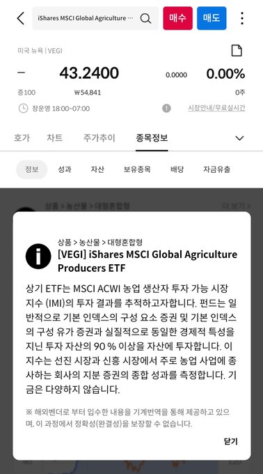 제가 올해 9월인가 10월부터 모으고 있는 농업 ETF인데 티커명 너무 귀엽지 않나요? 농업 ETF라고 이름이 VEGI에요 ㅎㅎㅎㅎ