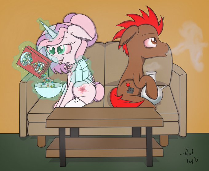 @anticular Heyo, I'm Pixel Grip and I mostly draw stuff containing cute pastel horses created by all my wonderful friends.