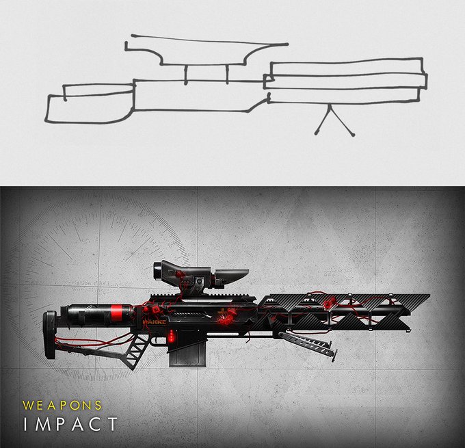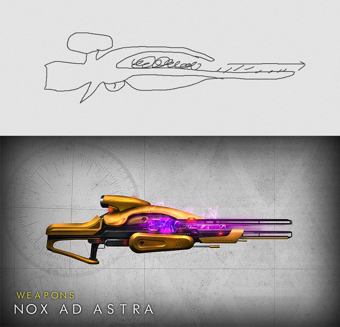 2 posts of #DoodlesToGuns today! This starter doodle was sent by @IndulgentHuman and turned into short ranged power! #Destiny2