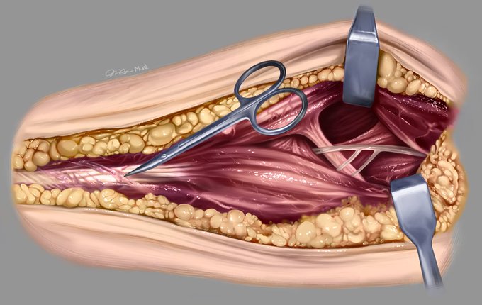 🎨 There's nothing better than a beautiful medical illustration. For example, @michie_wu fasciotomy incision seen below.