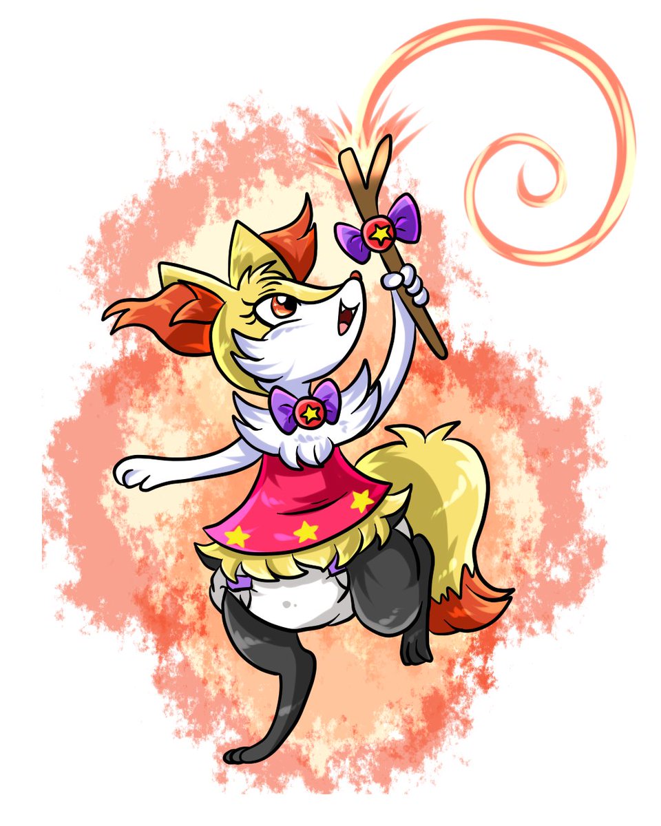 Sppoktober kofi donation gift X) The witch Delphox Maia with cat Dirakia up for some magic fun at night :D