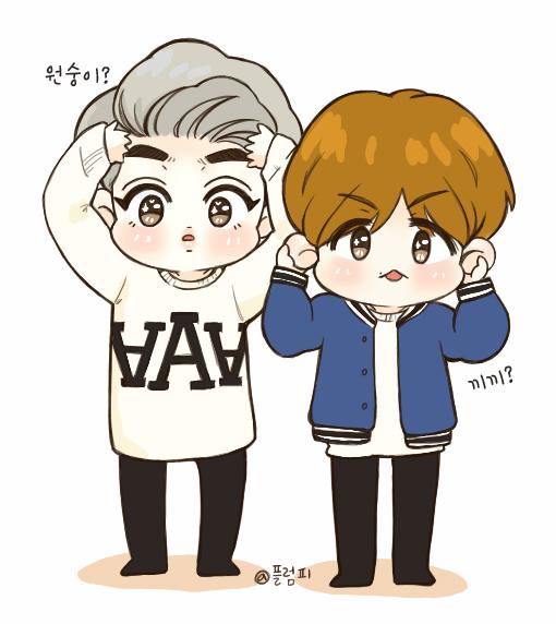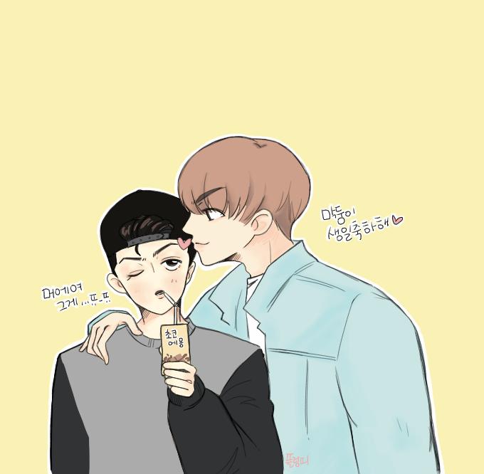 아니이게 무슨일이야...>////< 그림 리튓해주시고 별박아주시는 분들 넘 많아서 당황스러운ㅋㅋ좋아해주셔서 감사합니다..♡기념으로 두컷!!원숭이 흉내내는 백열과 빼빼로 씨엡에서 너무 귀여워서 그려봤어요~