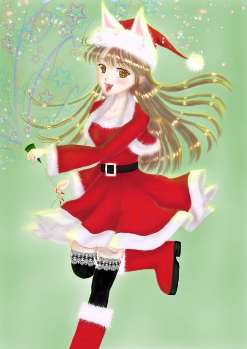 #Xmas #ネコミミサンタ #ミニスカサンタ #イラスト好きな人と繋がりたい #絵描きさんと繋がりたい #絵描き人