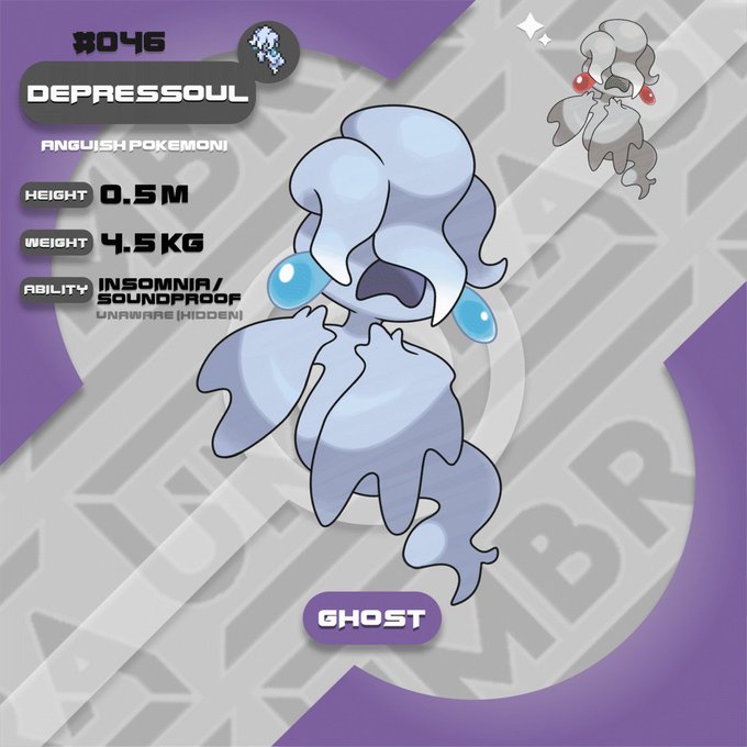 Today we're introducing Depressoul, a pure Ghost-type Pokémon! This Pokémon has a new and unique evolution method that requires the Pokémon to be least level 35 and have one other fainted Pokémon in your party.