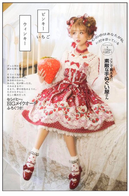 Aaaahh I love this print because it reminds me of.. a mix of older AP designs haha - also the illustration work is lovely. I wish they had examples of the white & pink JSKs tho instead of an illustration