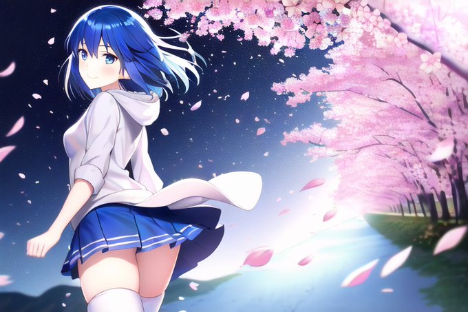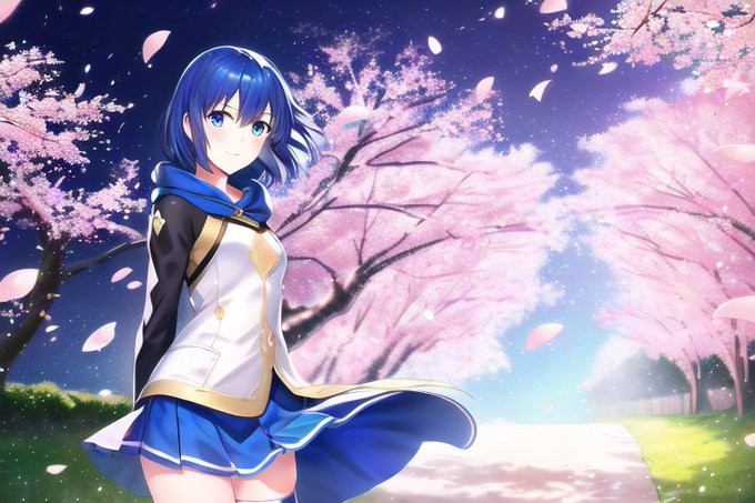 さっき学んだポーズにプラスアルファで付け加えて生成。桜の花舞う風景に笑顔のカチュア。 #AIイラスト #AIart #NovelAI #FireEmblem #ファイアーエムブレム #カチュア