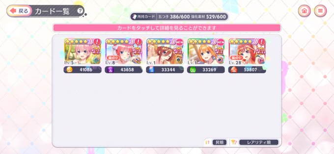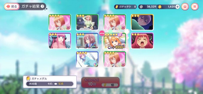 確定前10連で最推し🍀 確定で三玖引いて早々と勢揃い🎉🙌 見事にバラけてくれたわ SSこんなに居ても育てられませんw #ごとぱず